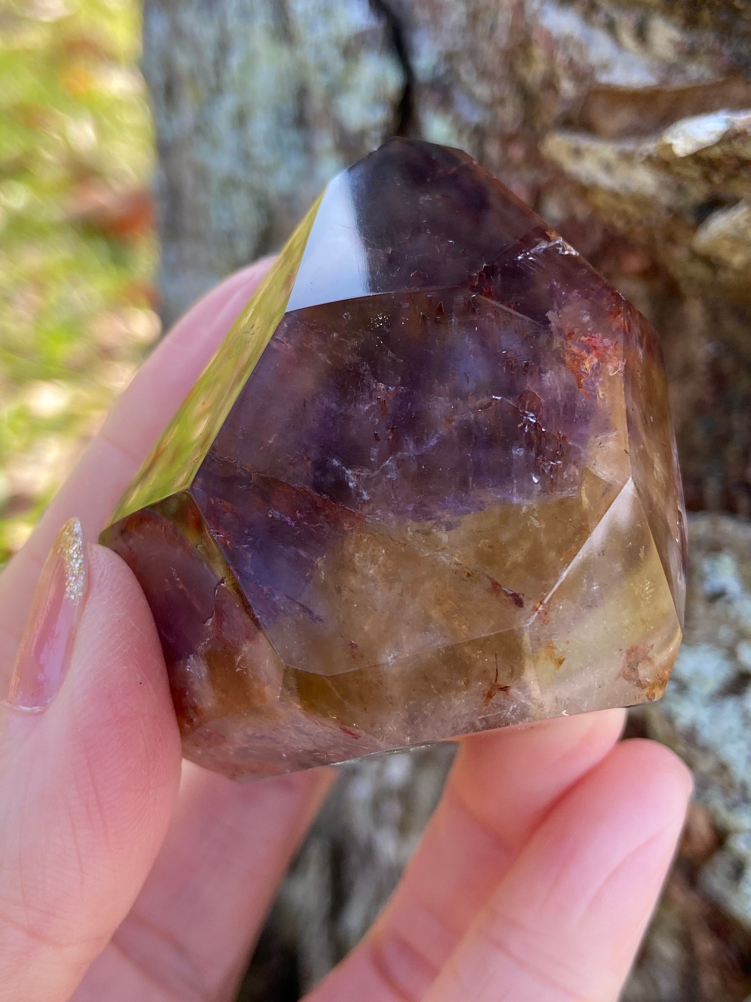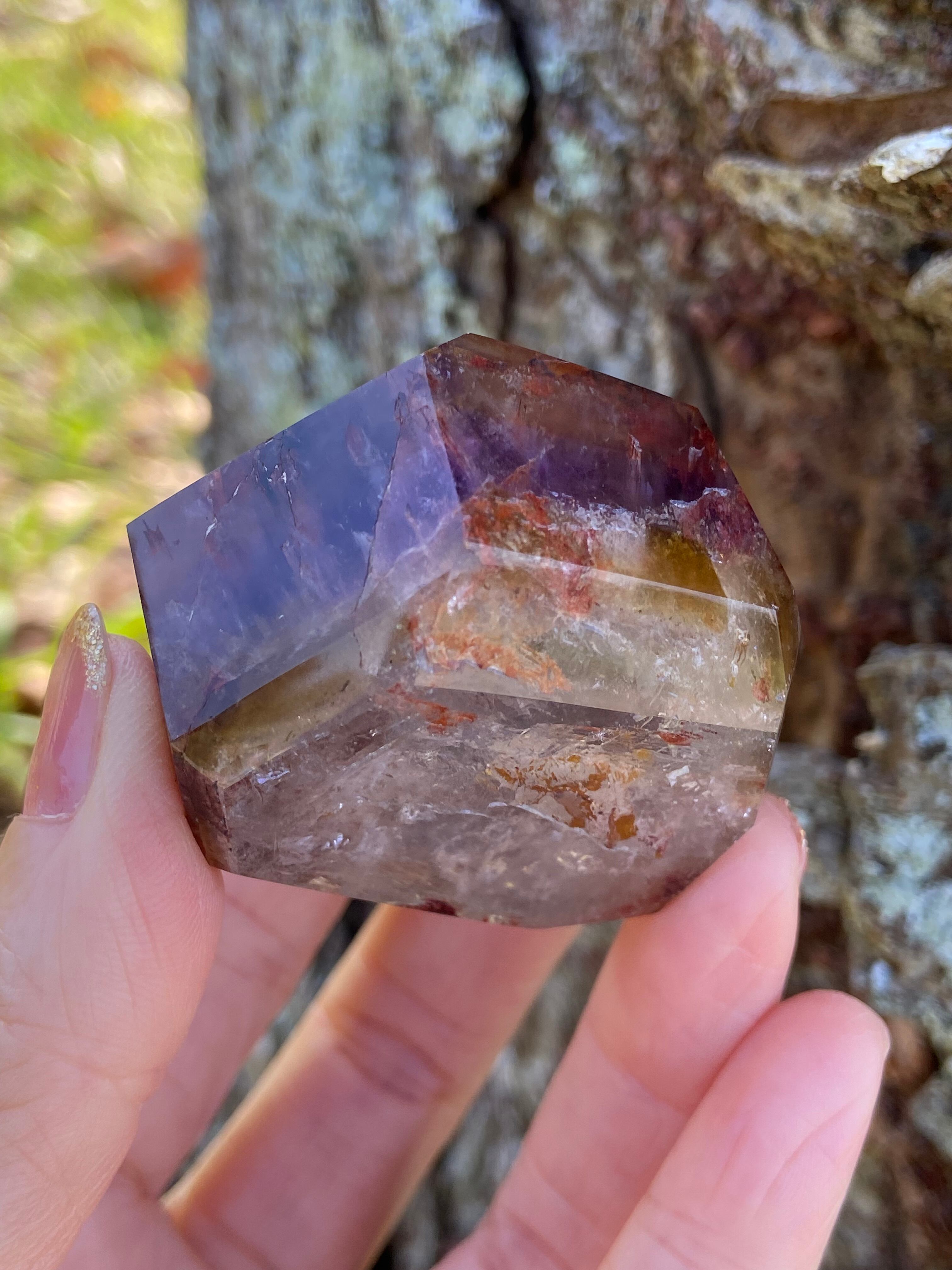鉄分によって赤く色づいた下にアメジストのパープルのファントムが見られるもの、クラックから虹をたくさん輝き放ちキュートなオレンジで可愛らしいもの、落ち着いた不動な雰囲気を持つもの、と個性豊かですので是非動画を参考にご覧ください。