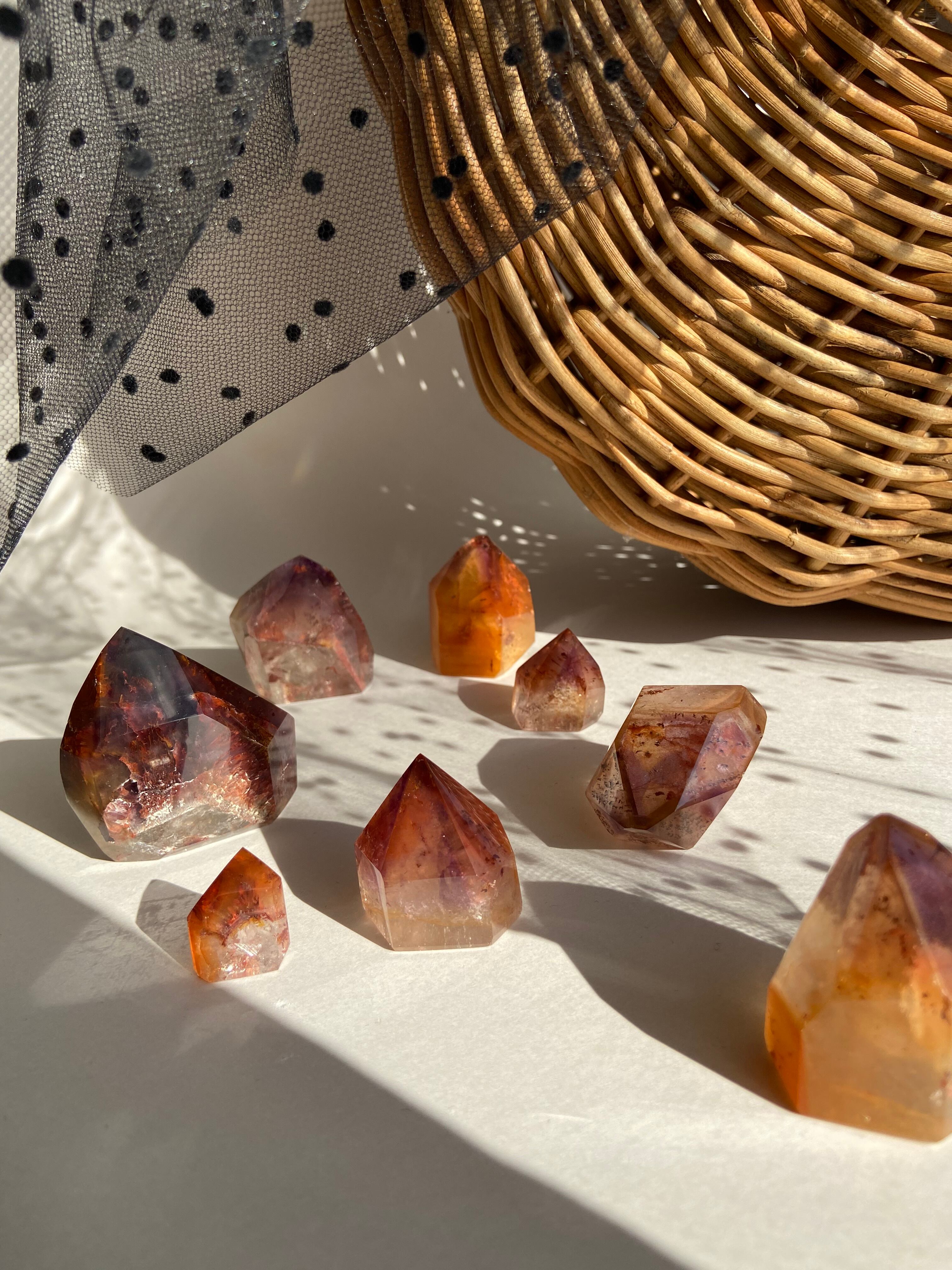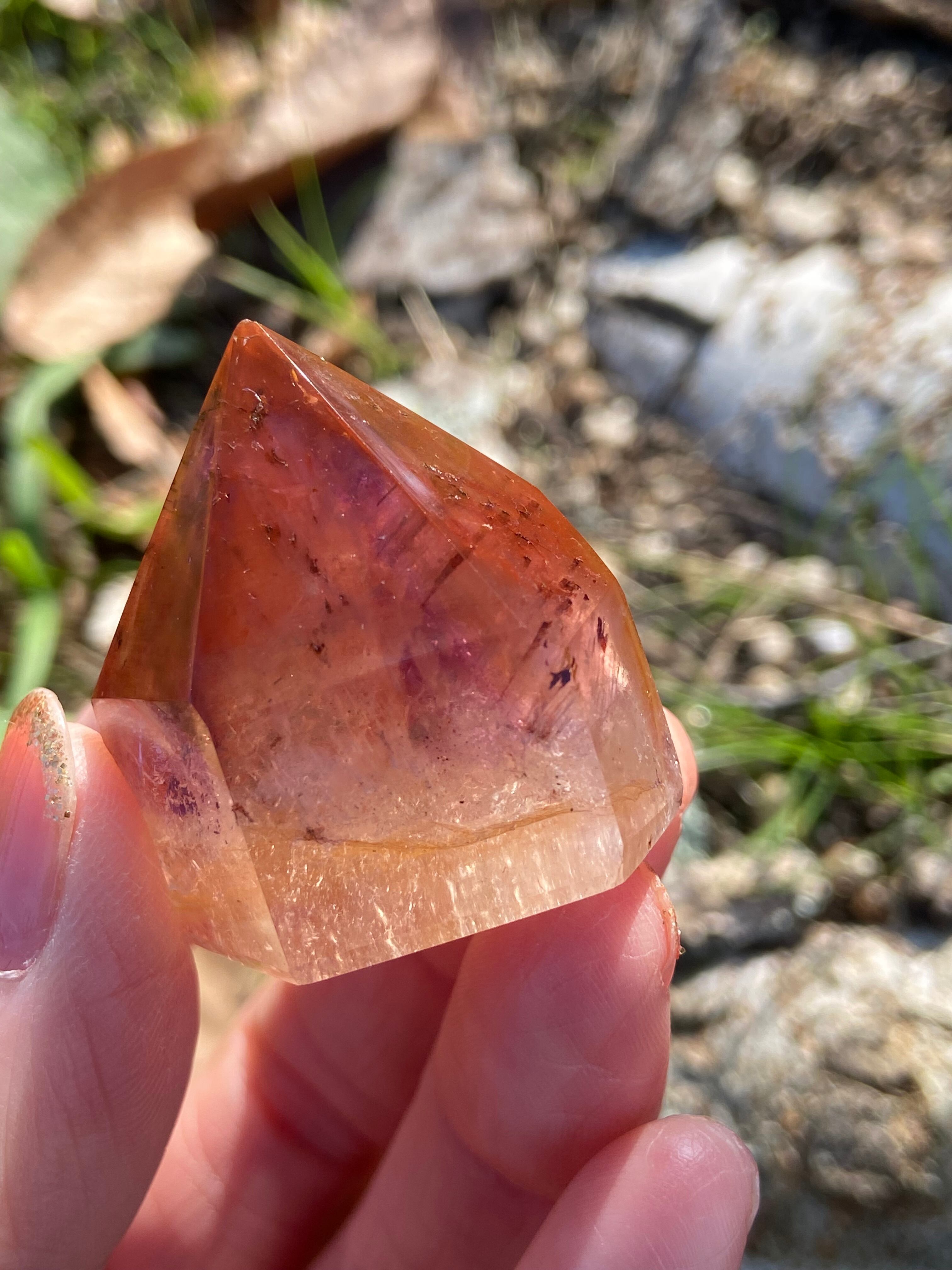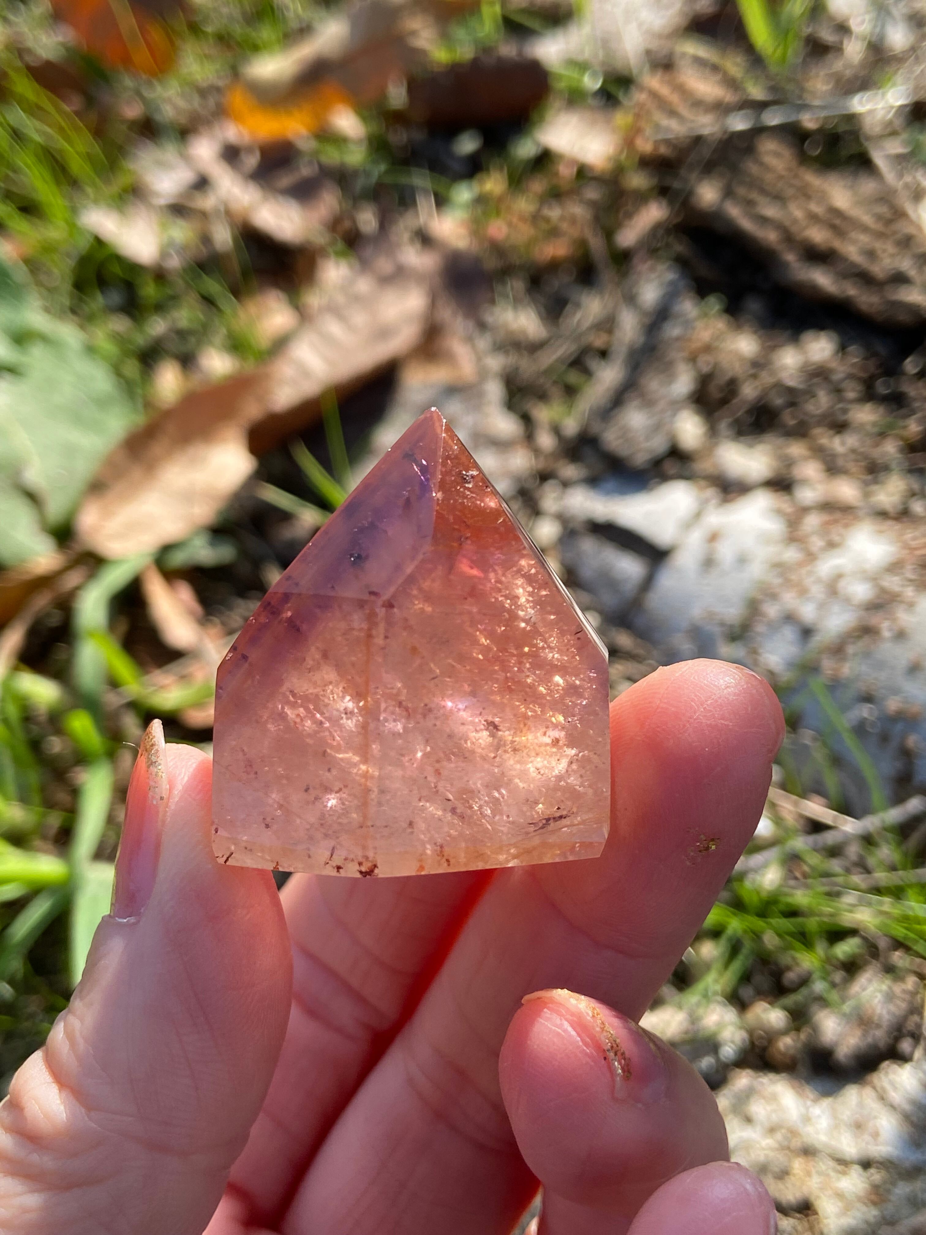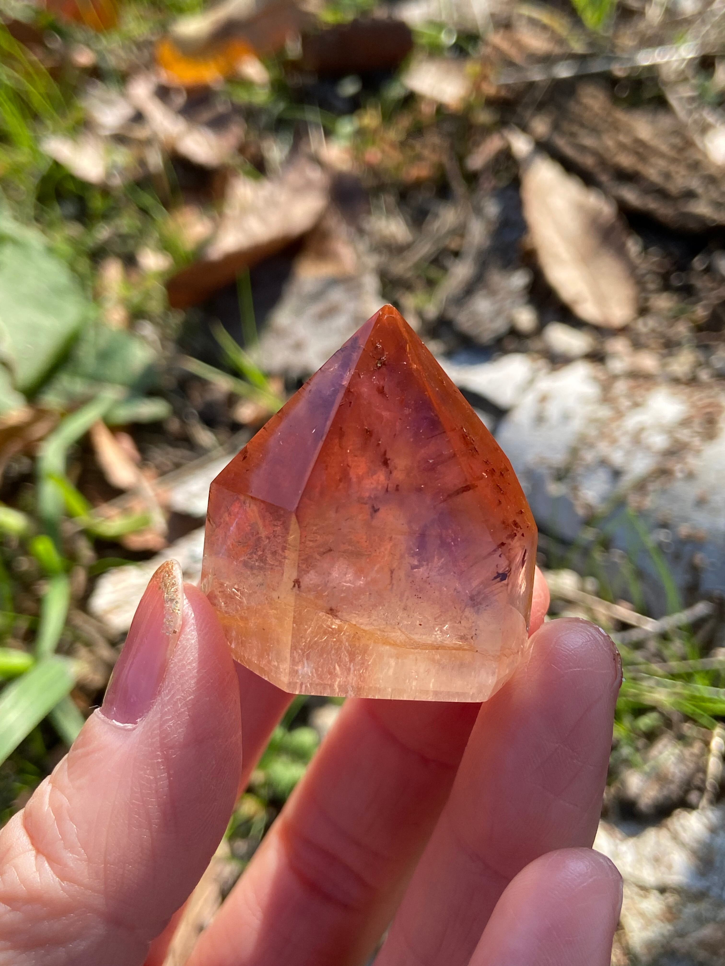 鉄分によって赤く色づいた下にアメジストのパープルのファントムが見られるもの、クラックから虹をたくさん輝き放ちキュートなオレンジで可愛らしいもの、落ち着いた不動な雰囲気を持つもの、と個性豊かですので是非動画を参考にご覧ください。